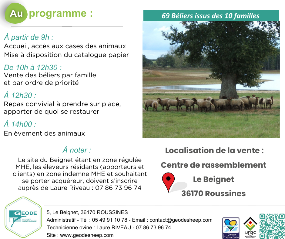.Pour une réservation ferme et anticipée de votre(vos) bélier(s) vous pouvez adresser à GEODE un chèque du montant du nombre de béliers souhaité (410€ HT prix base/bélier ), encaissé au retrait des animaux.